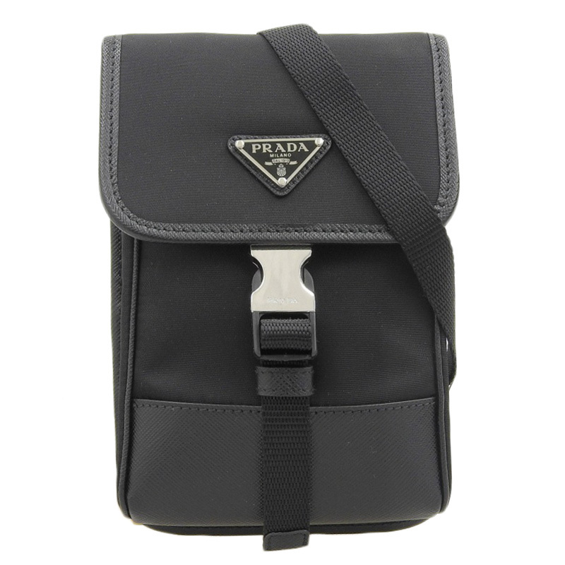 - プラダ PRADA フォンショルダー スマホケース ショルダーバッグ Re-Nylon/サフィアーノ ブラック 2ZH109 中古 新入荷 OB2213