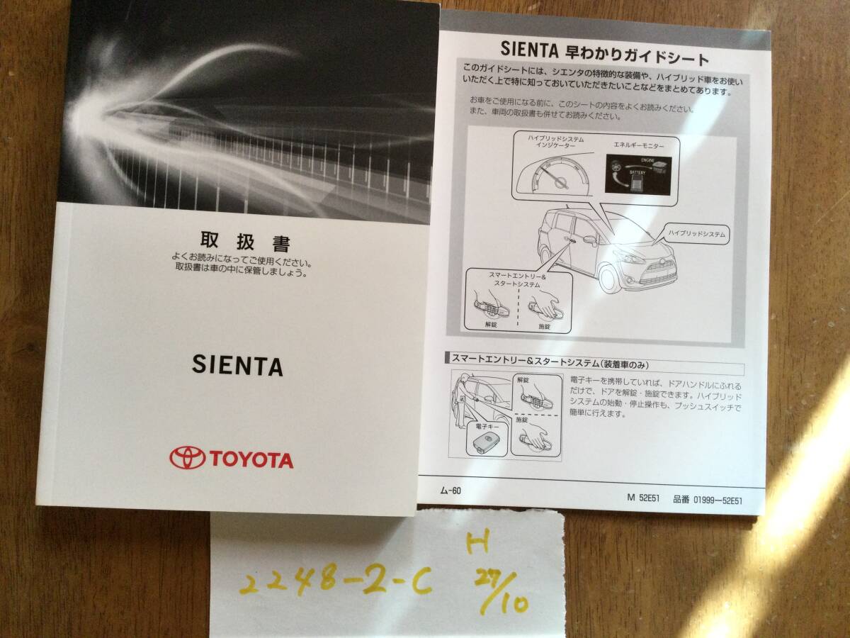 - 【シエンタ(ハイブリッド車)/SIENTA】取扱説明書 トヨタ TOYOTA ★全国送料無料★