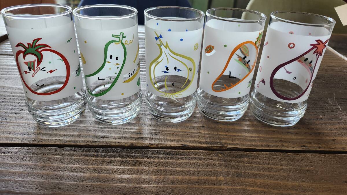> KAO黒棚★程度良好 昭和レトロ 野菜柄 グラス5個セット★ガラス製/コップ /食器/ 昭和レトロ /グラス/アンティーク/