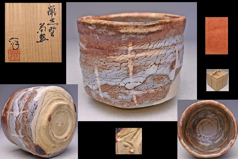 - 水野澤三 ★ 鼠志野茶碗 ★ 共箱共布 ★ 筒形 ★ 土岐市無形文化財保持者 ★ 陽山窯 ★ 人間国宝 富本憲吉 師事 ★ 加藤景秋 師事