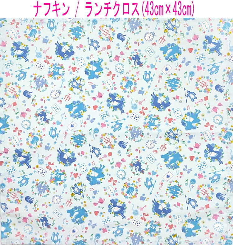 - ナフキン・ランチクロス(43cm×43cm)正方形【不思議の国のアリス柄 ベビーブルー】ランチマット ランチョンマット 日本製 ありす うさぎ