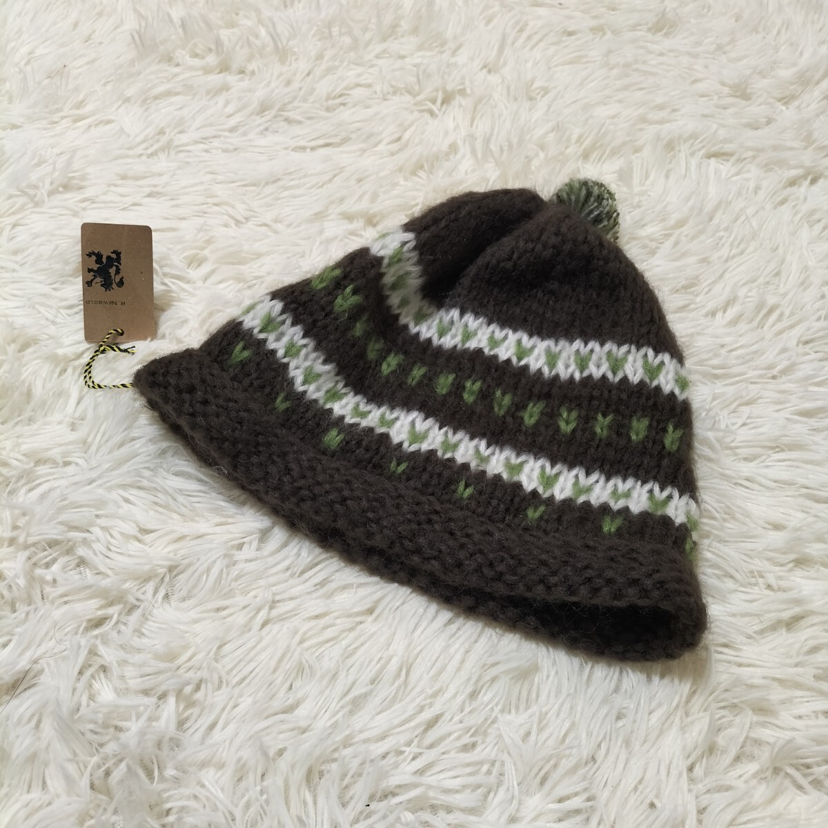 - 美品☆R.NEWBOLD ボンボンニット帽 ニットキャップ ビーニー カジュアル 帽子 タグ付 未使用 アールニューボールド ポールスミス 古着 USED