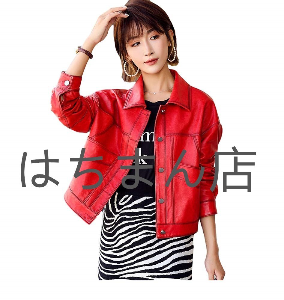 - 本革ジャケット 羊革 レディース レザージャケット 革ジャン ブルゾン 革ジャケット レディース アウター ブラック 赤 黒 ブレッド M-3XL