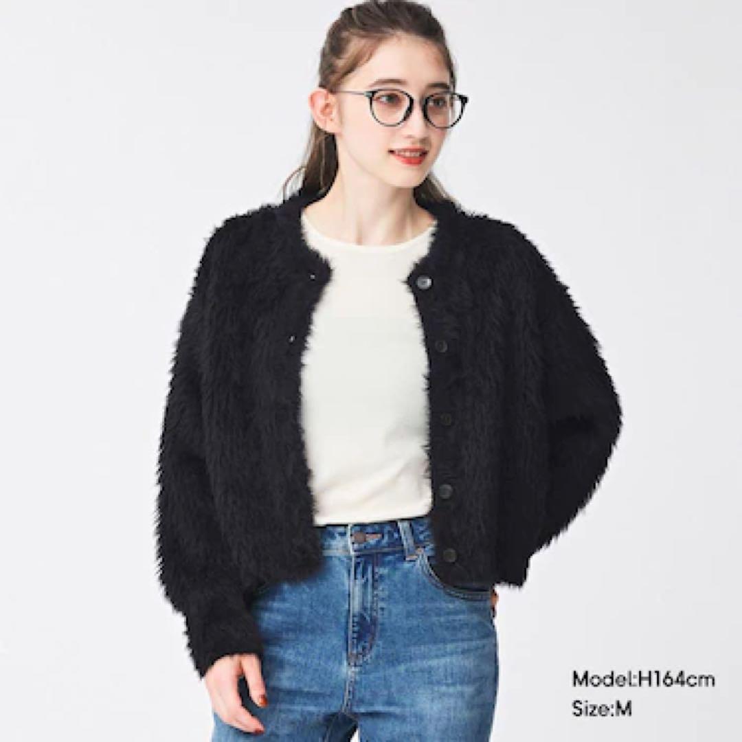 - GUフェザーヤーン クロップドカーディガン ブラック 黒 M ニットカーディガン
