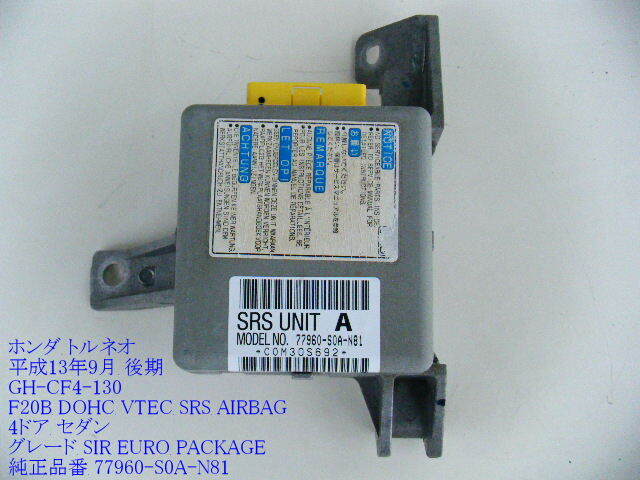 > ◆CF4 CF6 ホンダ トルネオ アコード SIR ユーロパッケージ エアバックコンピューター SRS エアバッグ ECU 77960-S0A-N81 [13574]