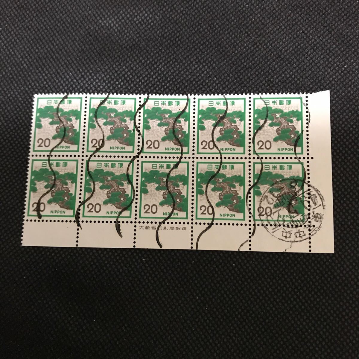 - 【満月印】切手 松 マツ 20円 10枚ブロック 銘版付き