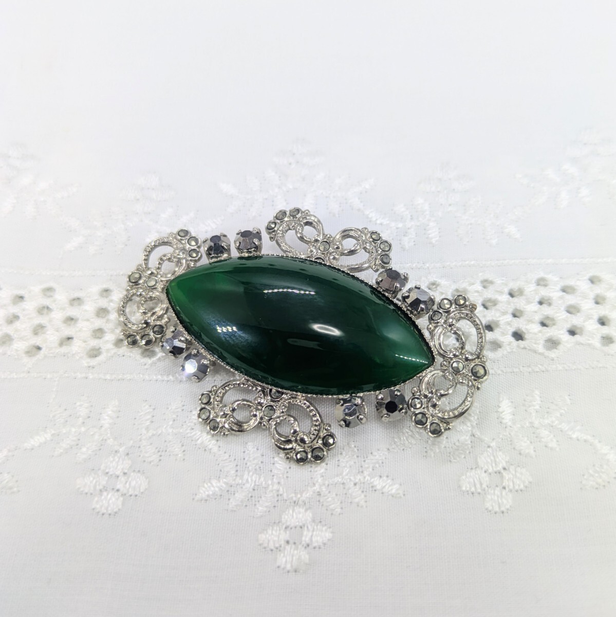 - 西ドイツ製 ヴィンテージ ブローチ グリーン カボション シルバーカラー WESTERN GERMANY vintage アクセサリー