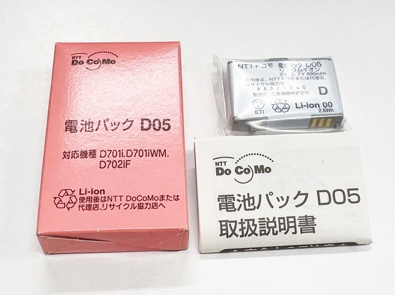 - 未使用新品 D05 電池パック 純正 ドコモ AAD29040 docomo FOMA D701i D701iWM D702iF 対応バッテリー 希少品