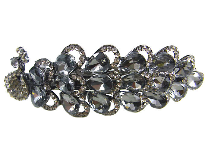 - ヘアクリップ バレッタ 孔雀 キラキラ ラインストーン グレー ヘアアレンジ アクセサリ レディース mimosa