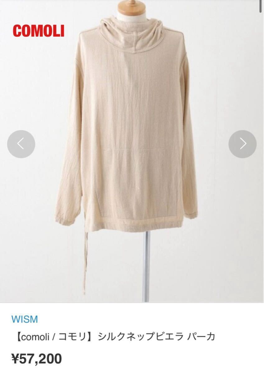 > 【希少】COMOLI コモリ シルクネップビエラパーカー プルオーバー フーディー シルク オーバーサイズ 定価57,200円 V01-01013