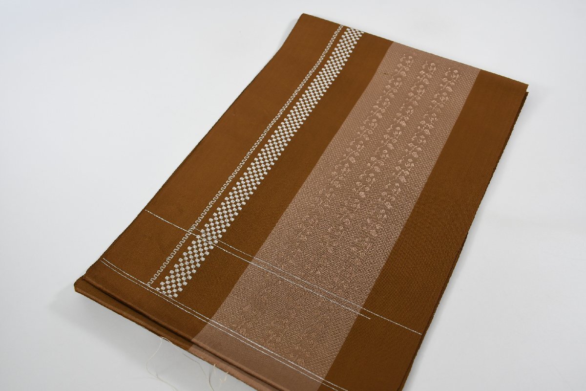 > 袋名古屋帯 未仕立て 唐花文様 縞模様 帯丈362cm ★着物屋 ne-13524 桜庭呉服店
