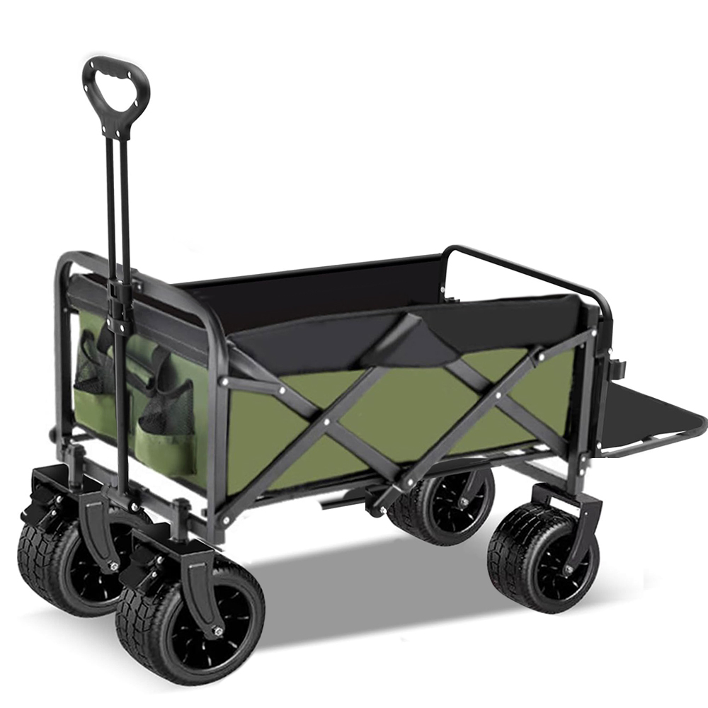 - 【大容量230L 後部展開可】大型キャリーワゴン ブレーキ付き 長物対応 折り畳み式 ワンタッチ収束 アウトドア オリーブグリーン/ブラック@@