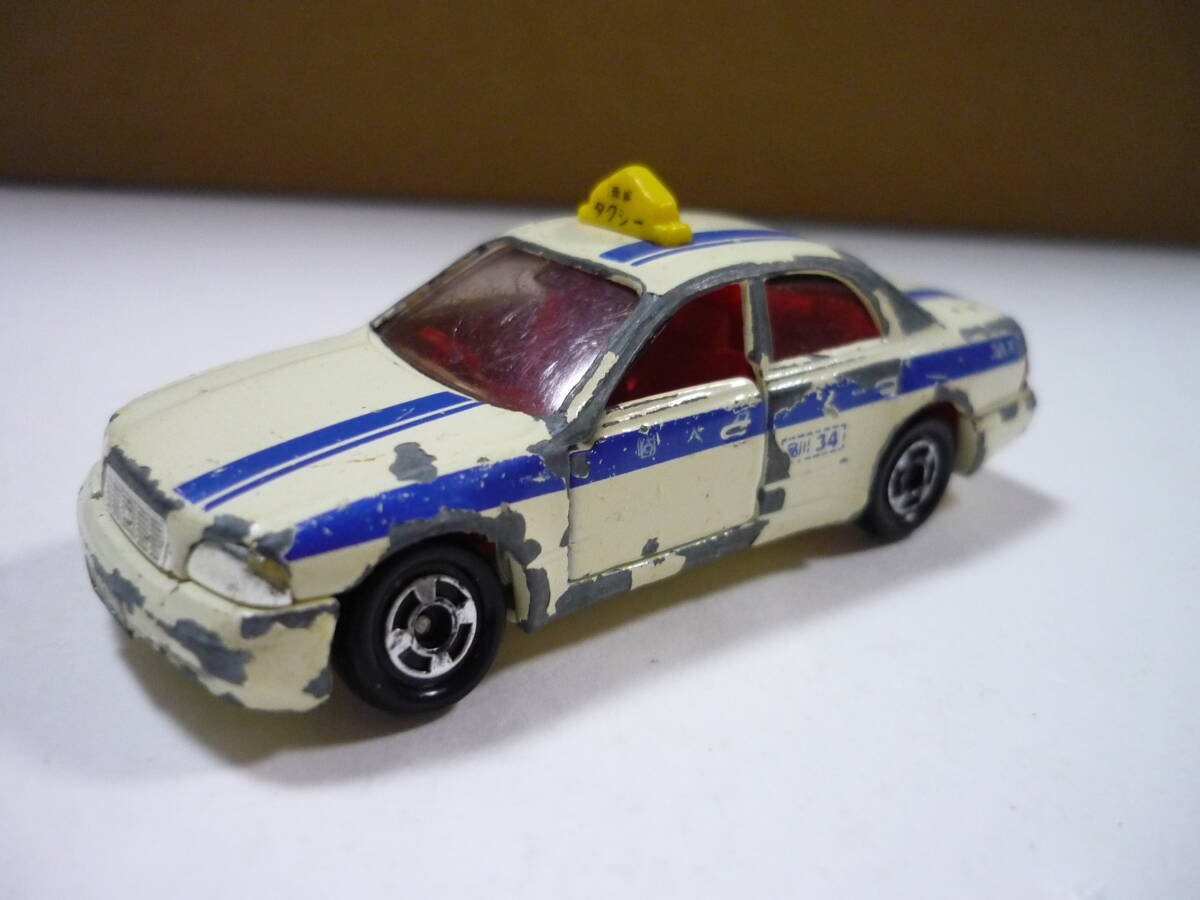 - [管00]【送料無料】ミニカー 1/64 トヨタ クラウン マジェスタ タクシー(ホワイト×ブルー) 1992「トミカ No.55」 ミニチュア タカラトミー