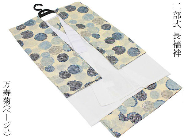 - 二部式長襦袢 友禅 お仕立て上がり 二部式 半襦袢 裾除け 半衿付 万寿菊 ベージュ 花柄 ながじゅばん Mサイズ 裾よけ 日本製 送料無料