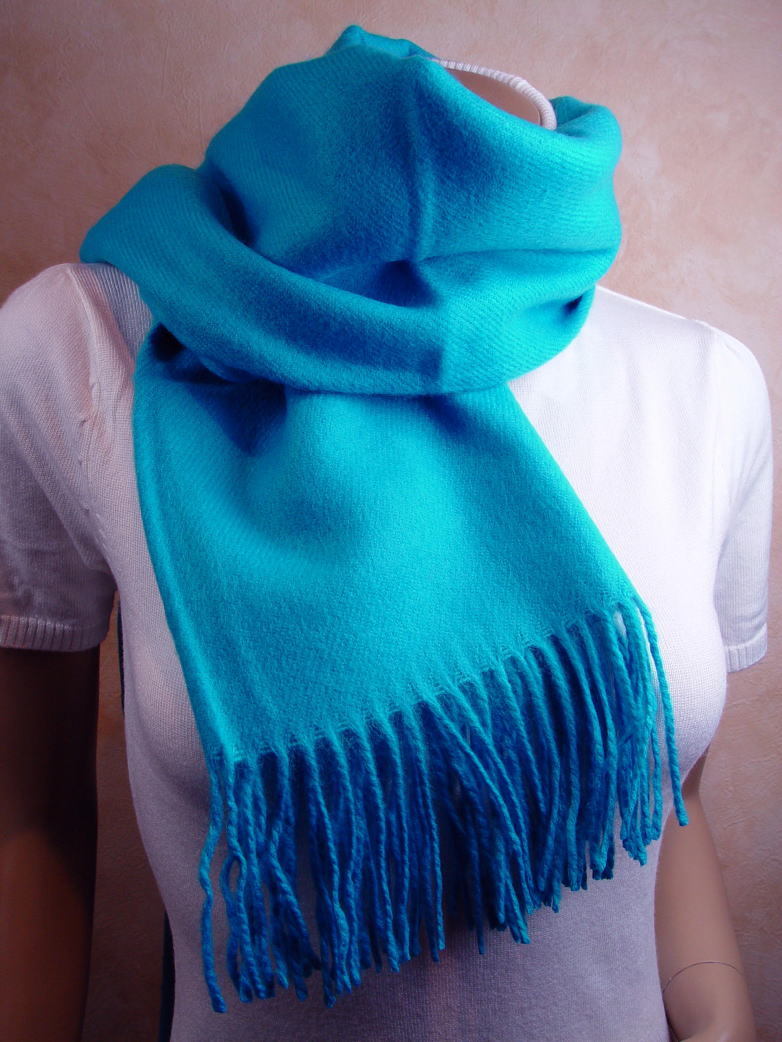 - カシミア100%英国”ストール”新作ターコイズブルー〇*:..azu00cラスト3