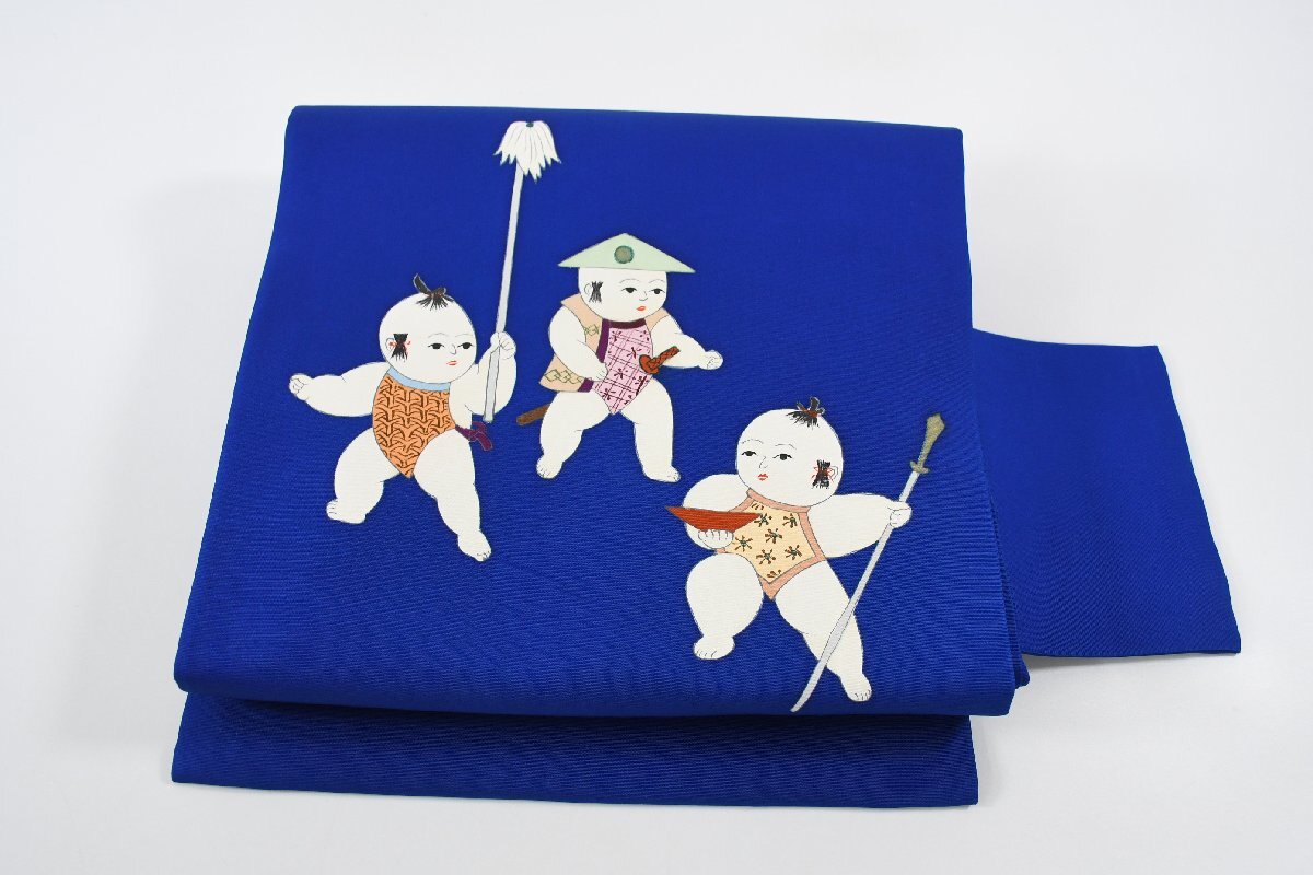- 名古屋帯 塩瀬 御所人形 手描き 帯丈384cm ★着物屋 ne-13553 桜庭呉服店