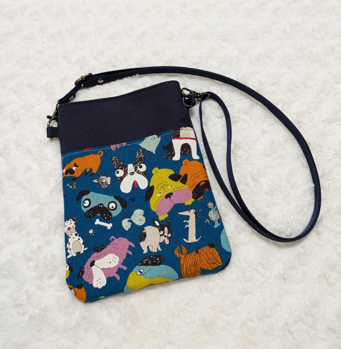 - 送料込み!ブサかわワンちゃん柄 スマホショルダー ブルーグリーン スマホ用ポシェット スマホ用ポーチ 再販
