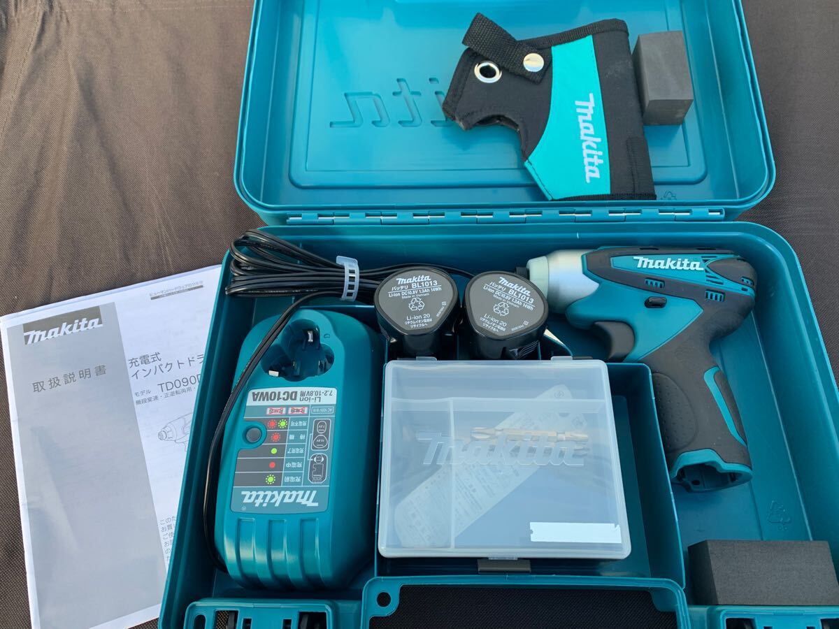 > マキタ 充電式インパクトドライバ ーTD090D 充電器 DC10WA バッテリーBL1013 2個 ハードケース付 動作品 中古美品