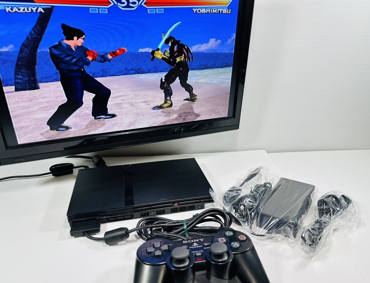 - 動作品 SONY ソニー PS2 SCPH-70000 チャコールブラック プレステ2 PlayStation 2 アダプタ/コントローラー/AVケーブル付きセット(D24)