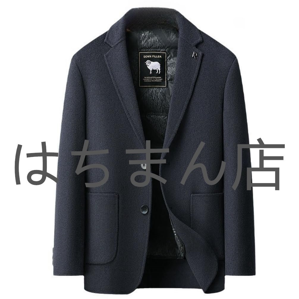 - ウールコート メンズ テーラードジャケット ガチョウダウン ジャケット スーツ 厚地 ライナー付き 暖かい 冬服 防寒着 ブルーグレー M-4XL