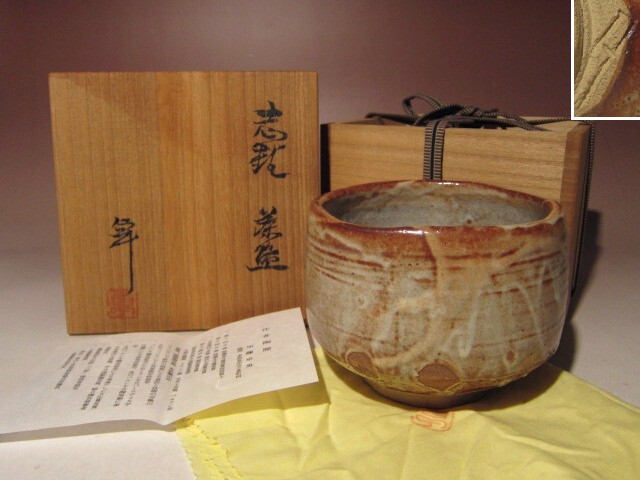 - 人間国宝 加藤卓男 志野茶碗★温もり感じる逸品★o329
