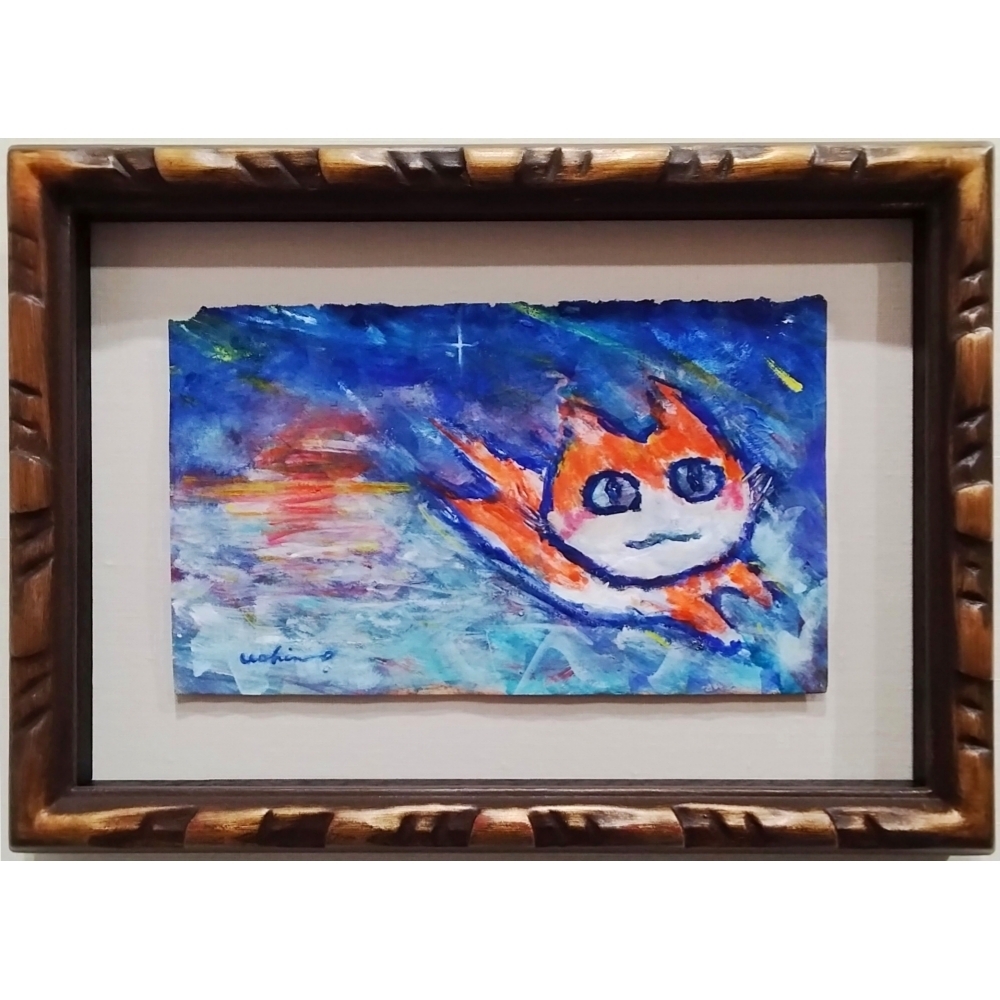 - 内野隆文 夕焼けネコダッシュ 絵画 現代美術 コンテンポラリーアート 猫 アクリル画 素描 アンティークペーパー 額付 真作