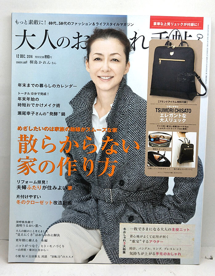 - ◆大人のおしゃれ手帖 2016年12月号 散らからない家の作り方 表紙:桐島かれん◆宝島社