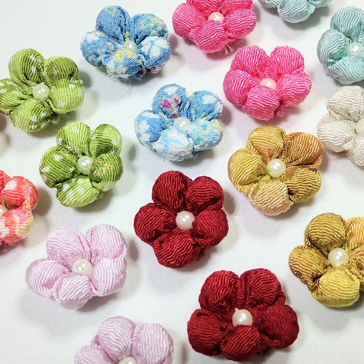 - 18個 28 和風 ちりめん細工 ふんわりお花 モチーフ ハンドメイド