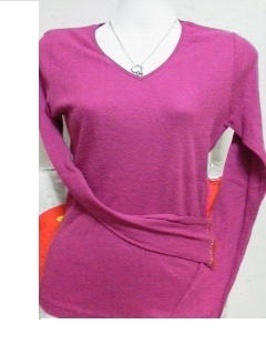 - ★新品ローズピンク暖か可愛い襟元袖口デザインカットソーMsaizu
