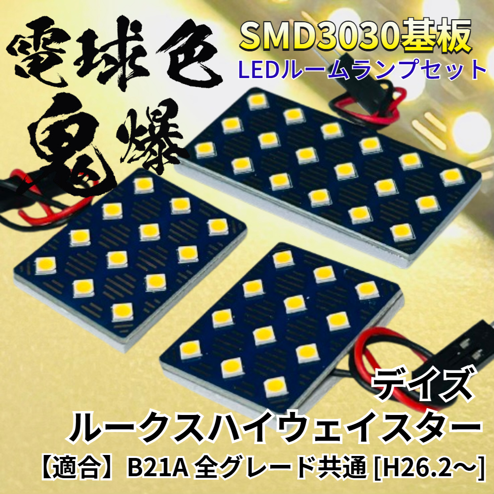 - 【電球色】デイズ ルークスハイウェイスター B21A 暖色 鬼爆基板 3030SMD LED ルームランプ セット 車内灯 パーツ アクセサリ ニッサン