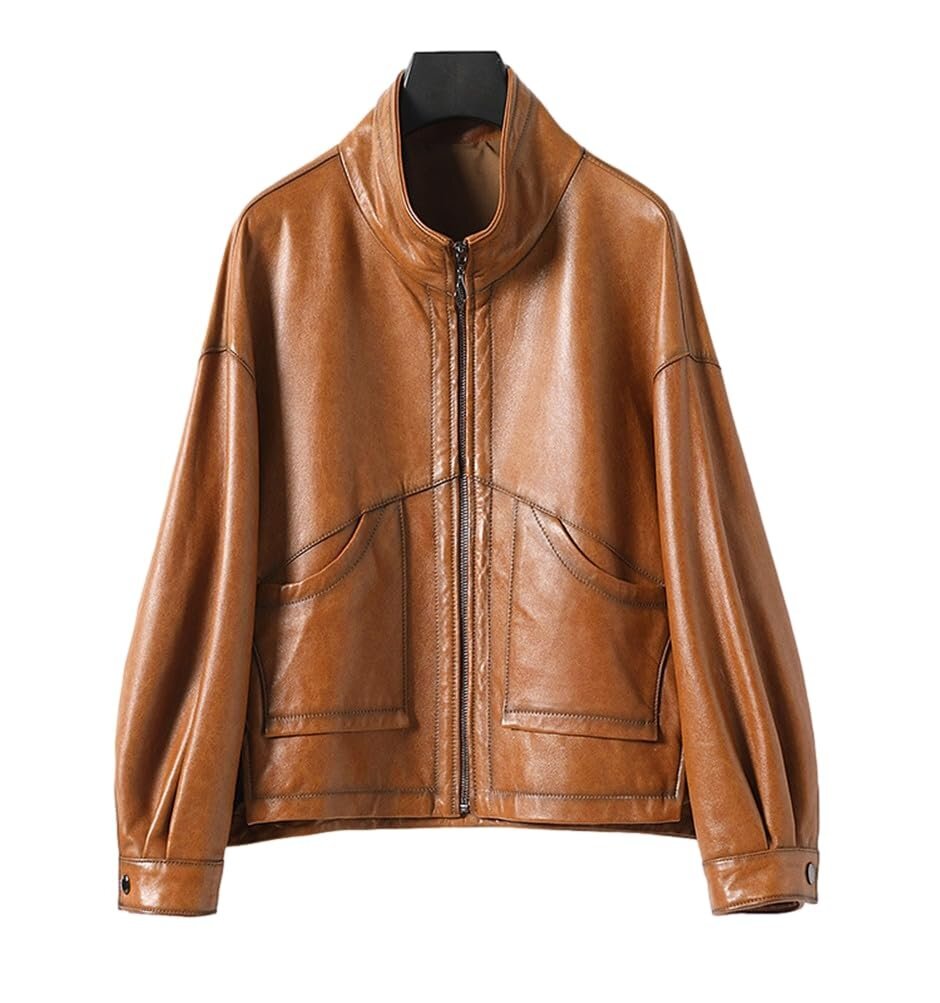 - レザージャケット レディース 革ジャン 皮ジャン ジャケット ライダース 秋冬 本革 ラムレザー ジップアップ 春ファッション ブラウン S-XL