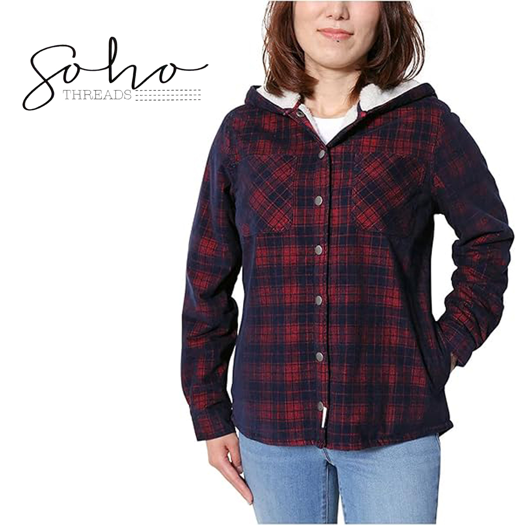 > 新品 M ★ コストコ Soho THREADS ソーホー レディース 裏ボア シャツ パーカー ジャケット ネイビー レッド シェルパ チェック柄 アウター
