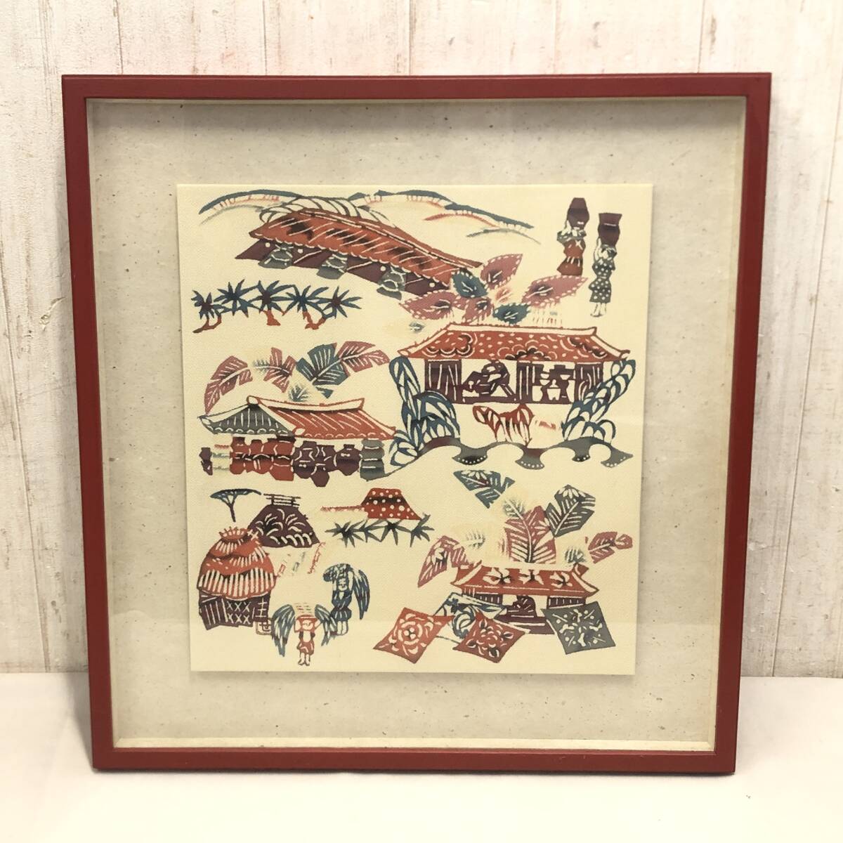 - *【真作】人間国宝 芹沢銈介 型絵染 額装 琉球風景 沖縄 染色工芸家 文化功労者 美術品 染物 芹澤銈介
