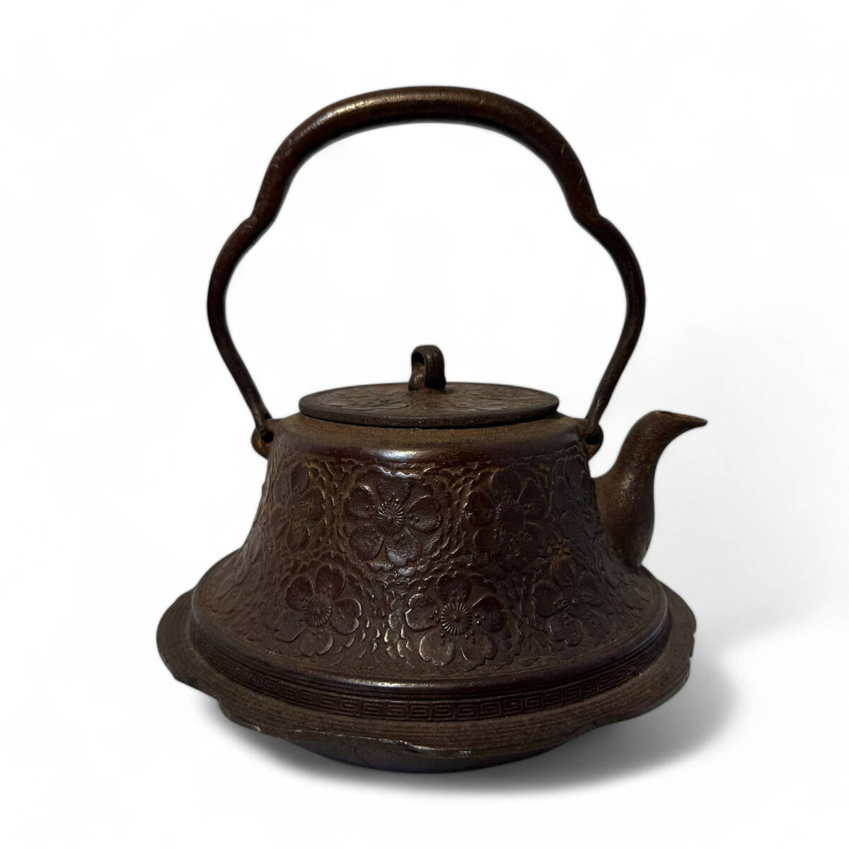 - K2412 鉄瓶 光雲作 富士形 桜花紋 茶道具 古道具 骨董 昭和レトロ