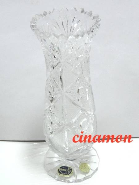 - チェコスロヴァキア製 ボヘミアガラス フラワーベース ケース付 クリスタルガラス(花瓶/花器/インテリア