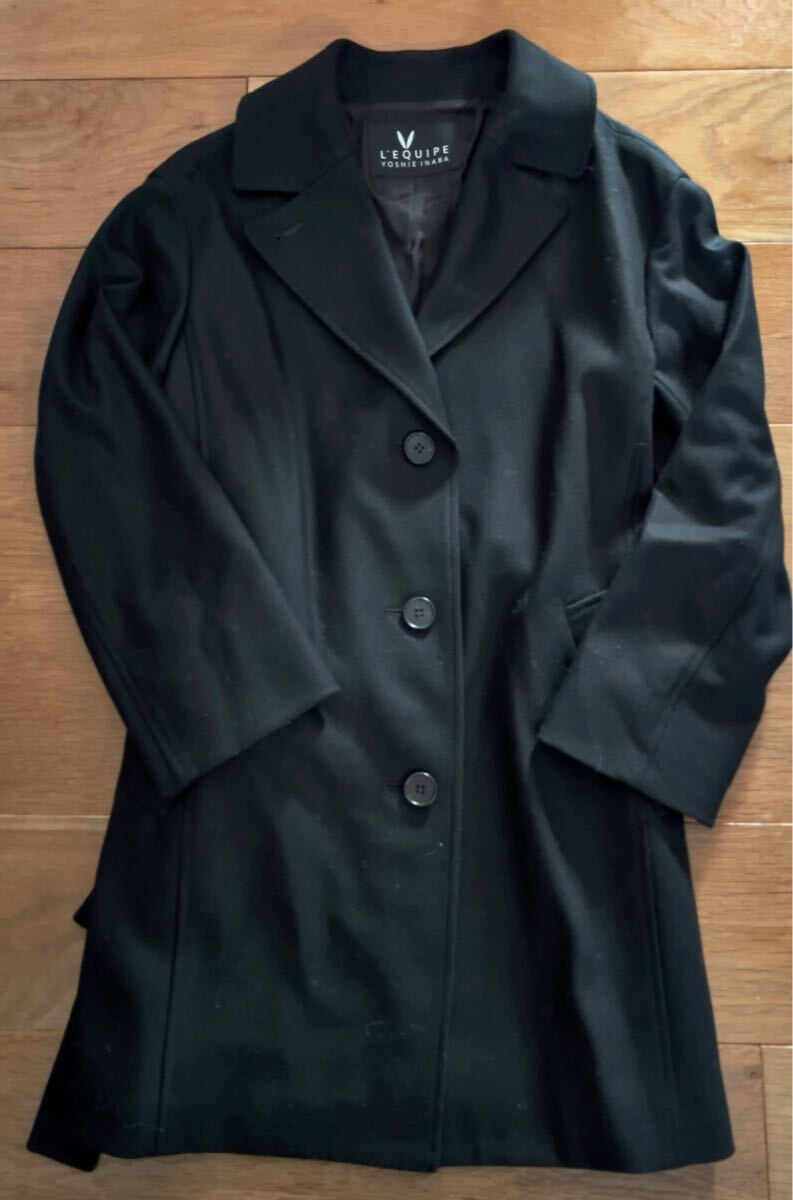 > 未使用 レキップ ヨシエイナバ L'EQUIPE YOSHIE INABA ★ 上質 定番 ウール テーラード コート M L ブラック 黒 ロングコート ベルト付き