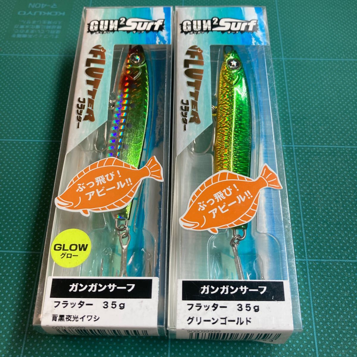 - 即決 2個セット 35g グリーンゴールド、背黒夜光イワシ ガンガンサーフ オーシャンルーラー フラッター