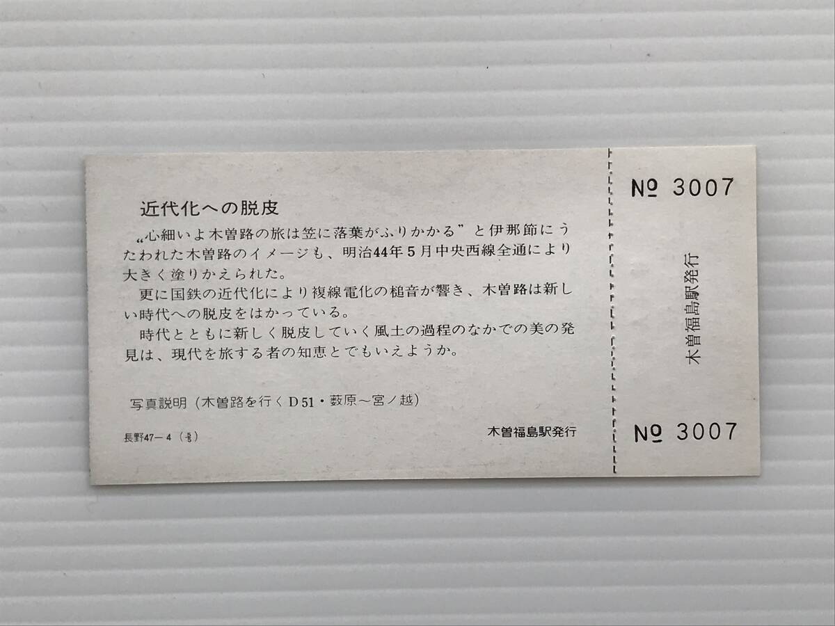 - 昔の切符 記念切符 木曽路D51号運転記念 普通入場券 木曾福島駅 長野鉄道管理局 昭和47年 鉄道100年 HF6674 くるり岸田繁