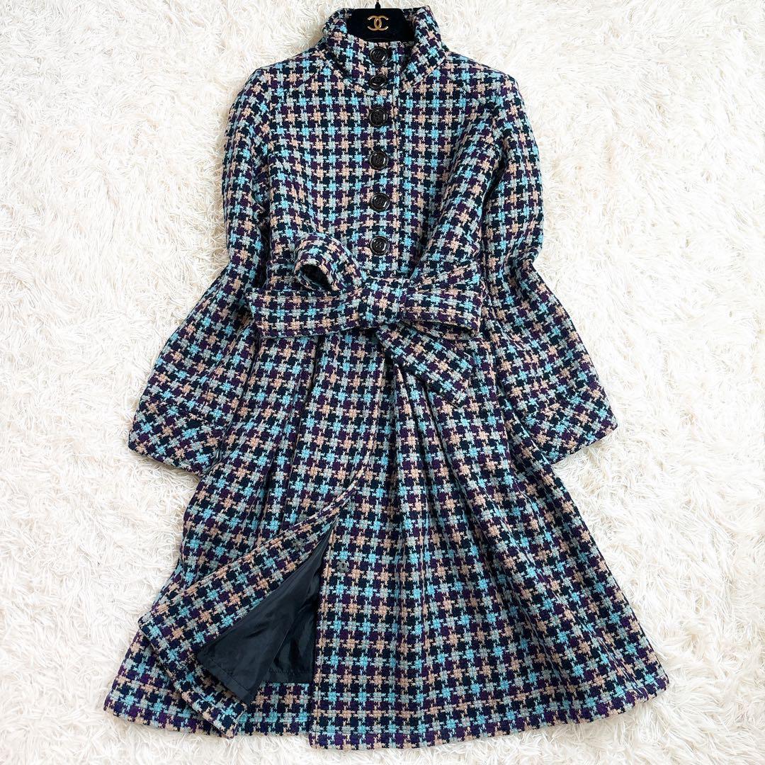> TX MIXPICE ロングコート ロング 腰ベルト タートルネック 丈総柄 格子模様 千鳥 日本柄 マルチカラー レディース