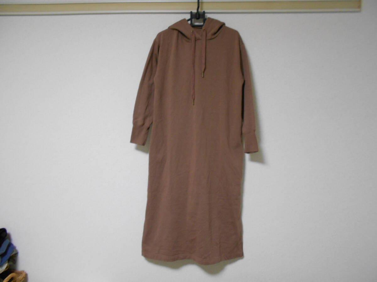 - 千趣会☆ブラウングレーくすみ茶色☆スウェットパーカーのチュニックワンピース☆ゆったり大きめ♪ロング丈☆ウエストポケット付☆Mサイズ