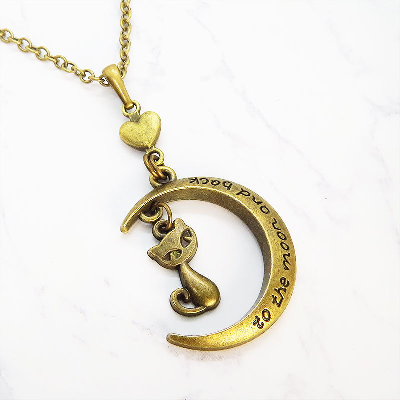 - アンティークゴールド 三日月と猫の大人可愛いネックレス ゴシック ハート 金古美 ムーン アジャスター付 長さ変更可
