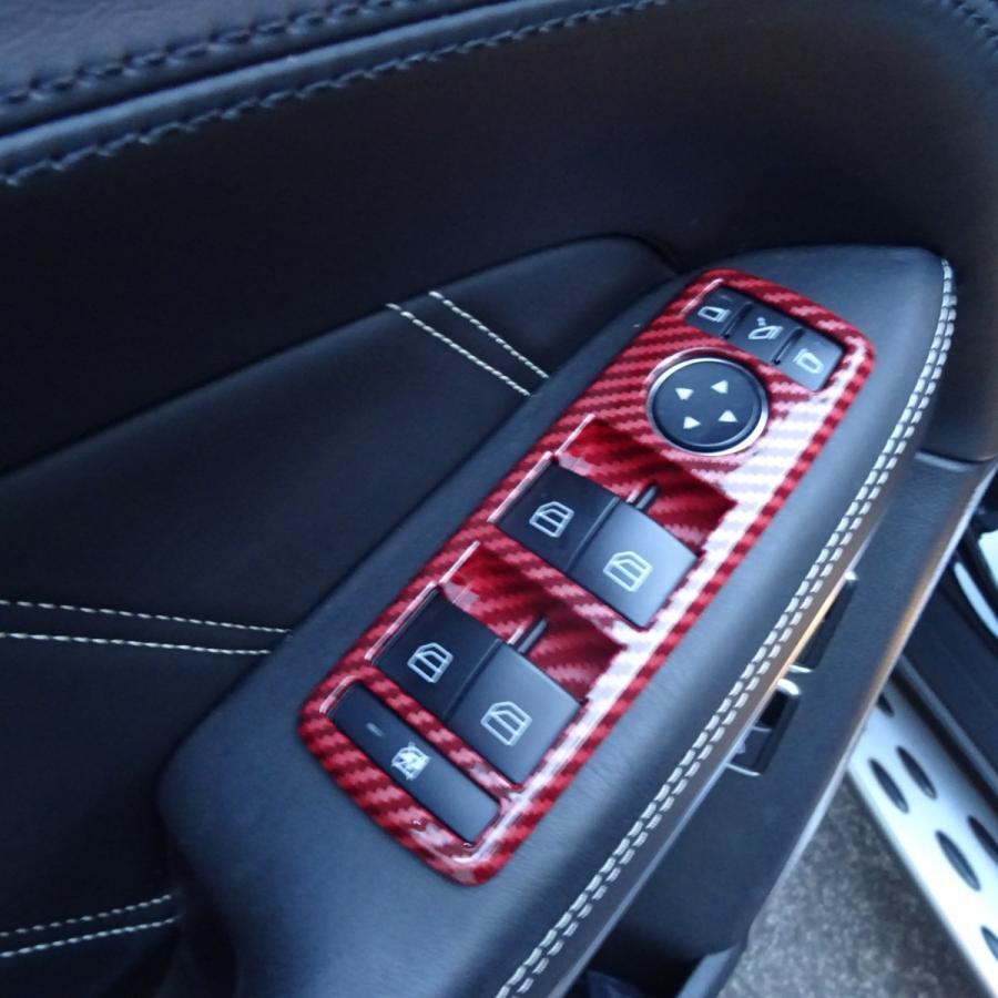 - デザイン性UP♪ メルセデス ベンツ カーボン ルック ウインドウスイッチ カバー 赤 X166 GL350 GL550 GL63 GLクラス