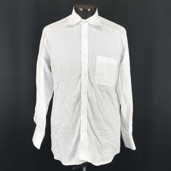 - シャツファクトリー/shirt factory★長袖シャツ【メンズS-M/白/ホワイト/ストライプ】◆BG668