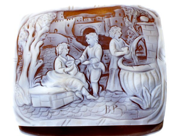 - 【ジュエリー極】作家品サイン刻印有り 美しい街中の情景彫刻 高級シェルカメオルース 70mm×58mm h7060o【送料無料】