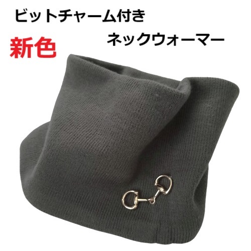 - ビット付き クールグレー ネックウォーマー 乗馬 防寒 冬 リアルなハミのチャーム 馬術