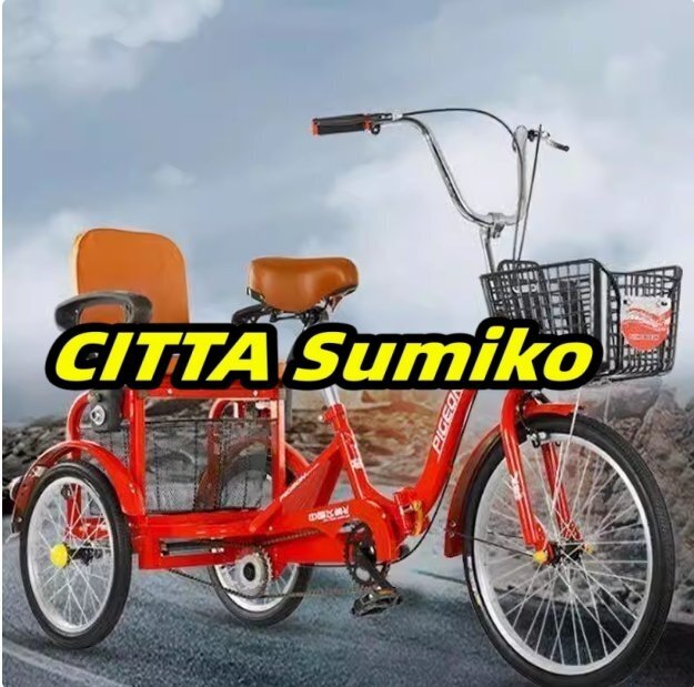 - 実用品!前輪20インチ・後輪16インチ 大容量 後カゴ付 大人用 三輪自転車 収納便利 高齢者用 高さ調節可能 組立品 初心者の自転車 104
