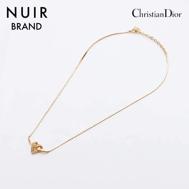 - クリスチャンディオール Christian Dior ネックレス ハート ラインストーン ゴールド