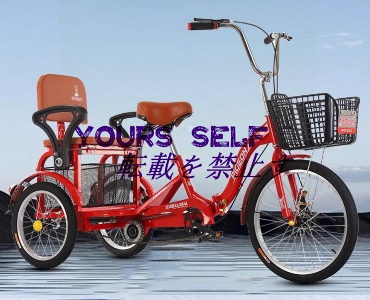 - 実用品!前輪20インチ・後輪16インチ 大容量 後カゴ付 大人用 三輪自転車 収納便利 高齢者用 高さ調節可能 組立品 初心者の自転車 104