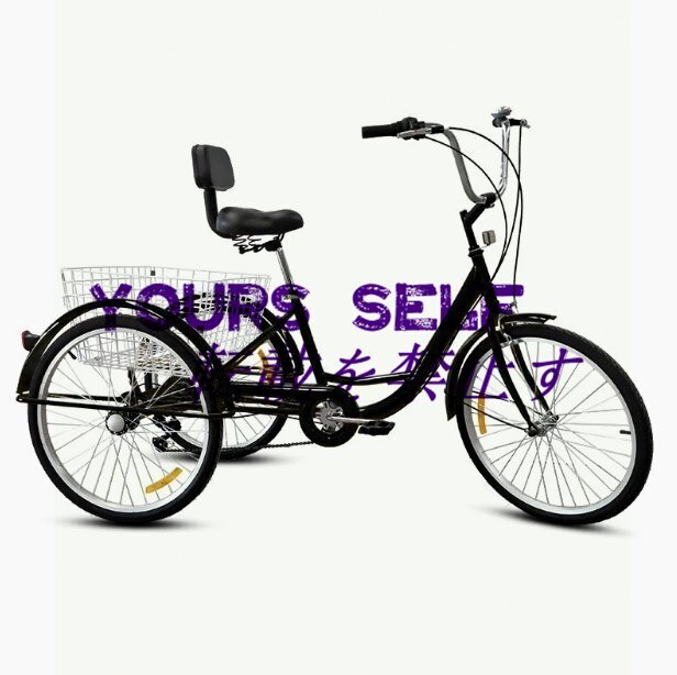 - お見逃しなく!大人用三輪車 24インチ三輪自転車 高齢者用 座席高さ調節可能 アショッピングバスケット付き 自転車 組立品 123