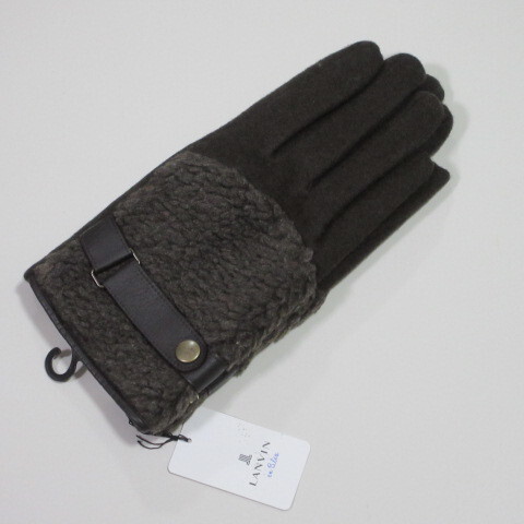 - メンズ手袋【LANVIN en Bleu 】ランバンオンブルー手袋 カシミヤ混 装飾ベルト羊革 裏地付き/ダークブラウン